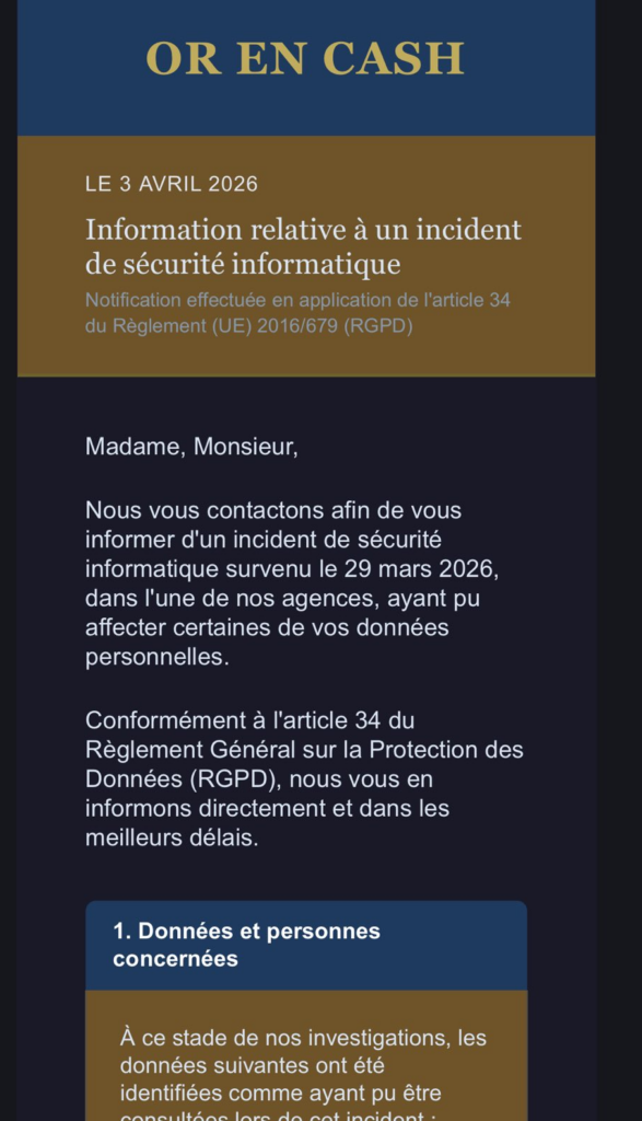 La série noire continue. Quelques semaines seulement après l'onde de choc provoquée par l'affaire Gold Union, c'est au tour d'autres acteurs majeurs du secteur, comme potentiellement Or en Cash, d'être scrutés de près par les analystes de menaces.